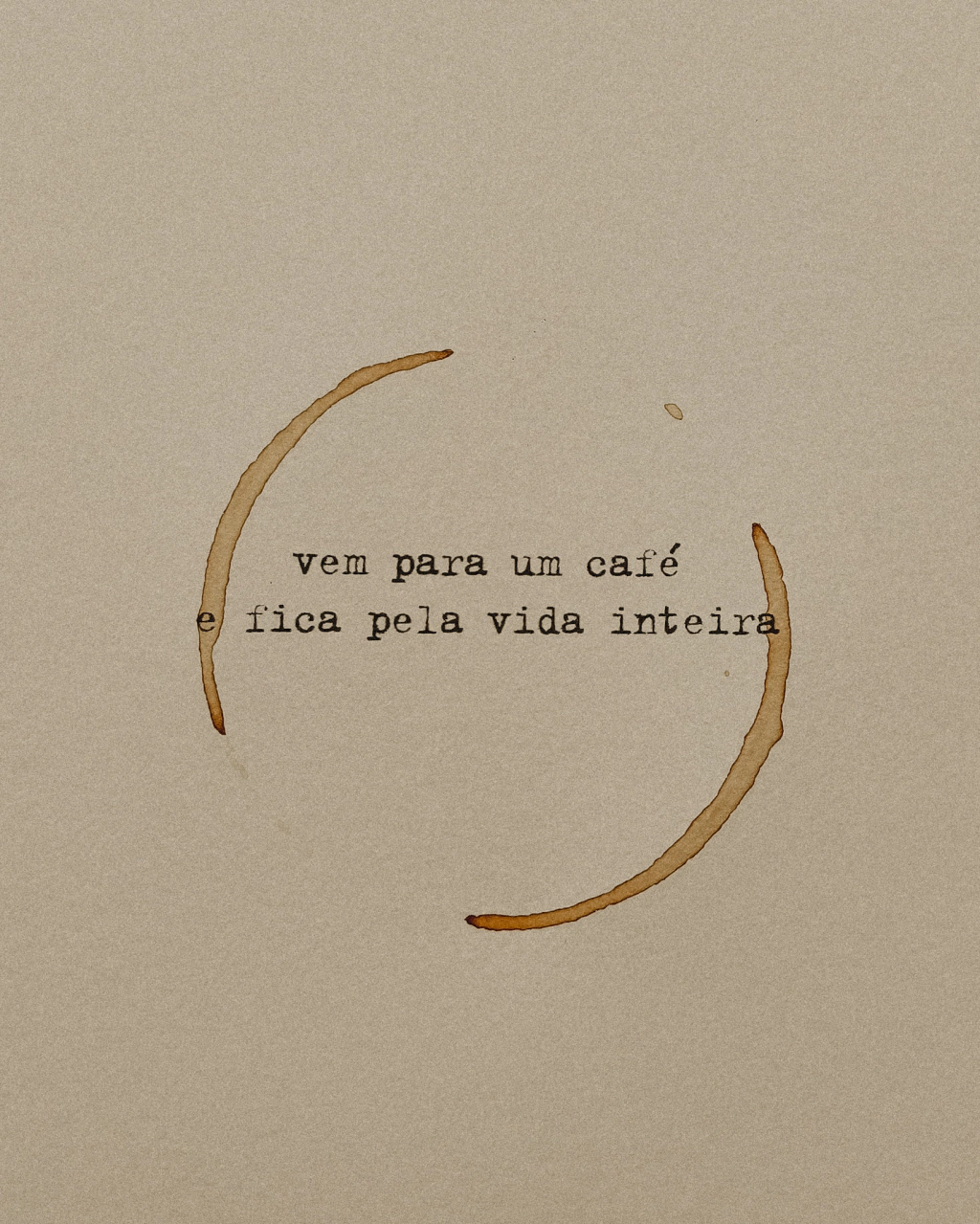 Vem para um café e fica pela vida inteira e uma mancha da caneca de café.